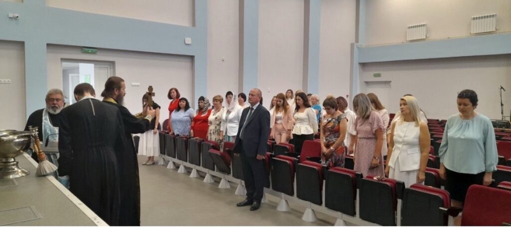 1 сентября в микрорайоне Тенистом в средней школе номер 84 состоялся молебен. Настоятель храма во имя святителя Антония Смирницкого протоиерей Николай Бабич вместе с клириками храма иереем Вадимом Валынкиным и иереем Владиславом Петелиным отслужили молебен и окропили святой водой кабинеты школы.