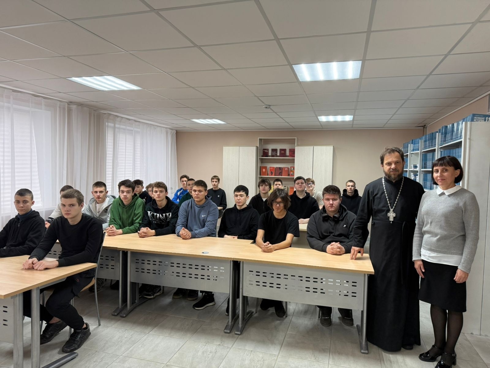 Опубликовано 1600 × 1200 13 ноября, настоятель нашего храма во имя Всех святых в земле Русской просиявших, благочинный Всесвятского церковного округа протоиерей Алексий Спицын посетил Воронежский индустриальный колледж. Батюшка побеседовал со студентами и преподавателями учебного заведения о христианском осмыслении жизненного пути, о различных вызовах времени, с которыми сегодня сталкивается каждый человек и об их духовном осмыслении. О. Алексий так же ответил на самые разные вопросы ребят и их наставников, опираясь не только на духовный, но и житейский опыт, благодаря чему беседа получилась живой и интересной для всех участников встречи.